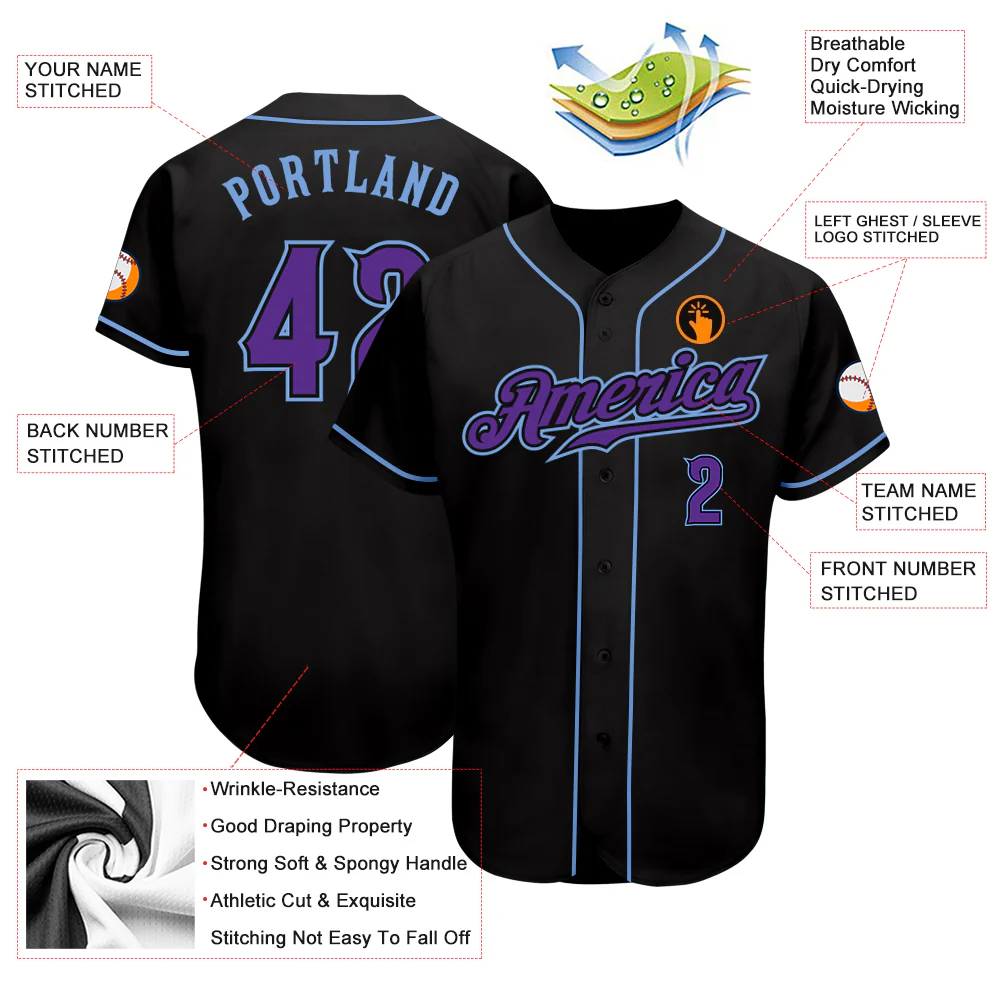 Custom Black Purple-Light Blue Authentic Baseball Jersey