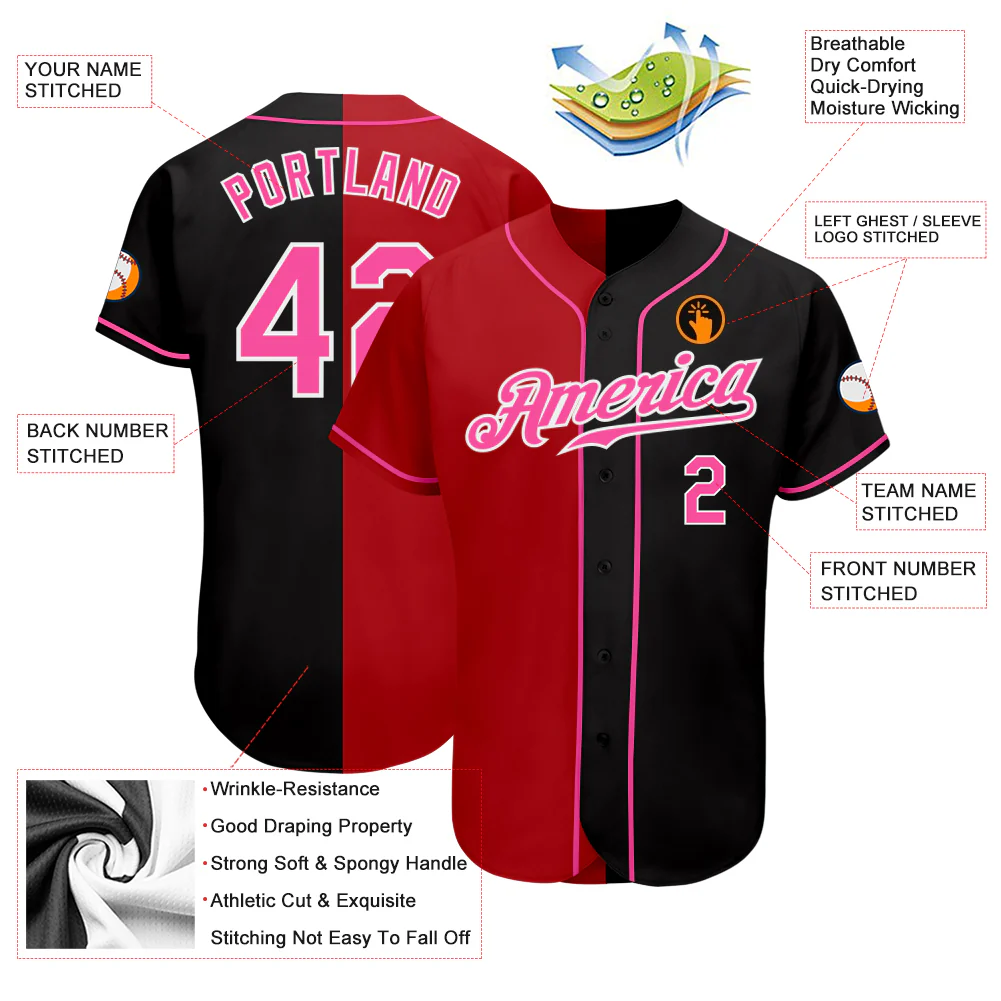 Custom Black Pink Red-White Authentic Split Fashion Baseball Jersey