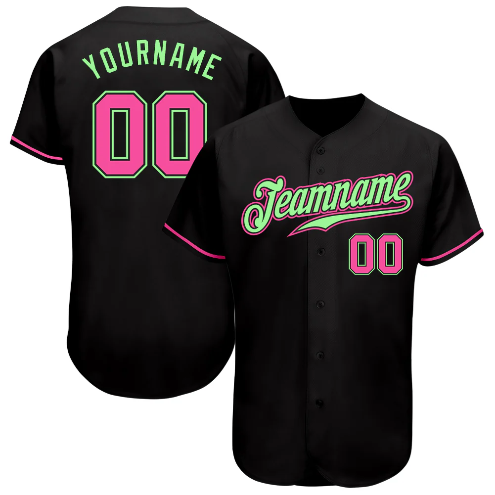 Custom Black Pink-Pea Green Authentic Baseball Jersey