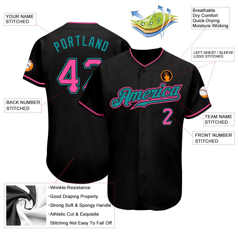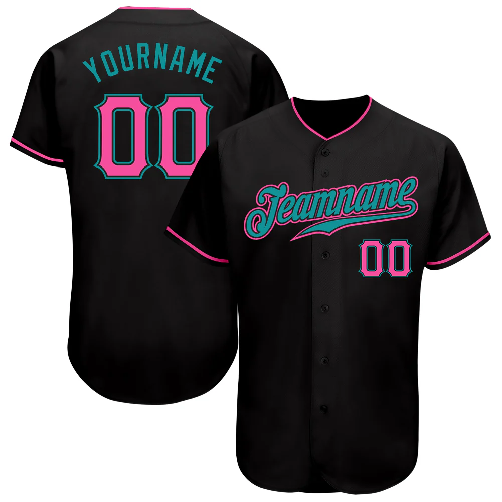 Custom Black Pink-Teal Authentic Baseball Jersey