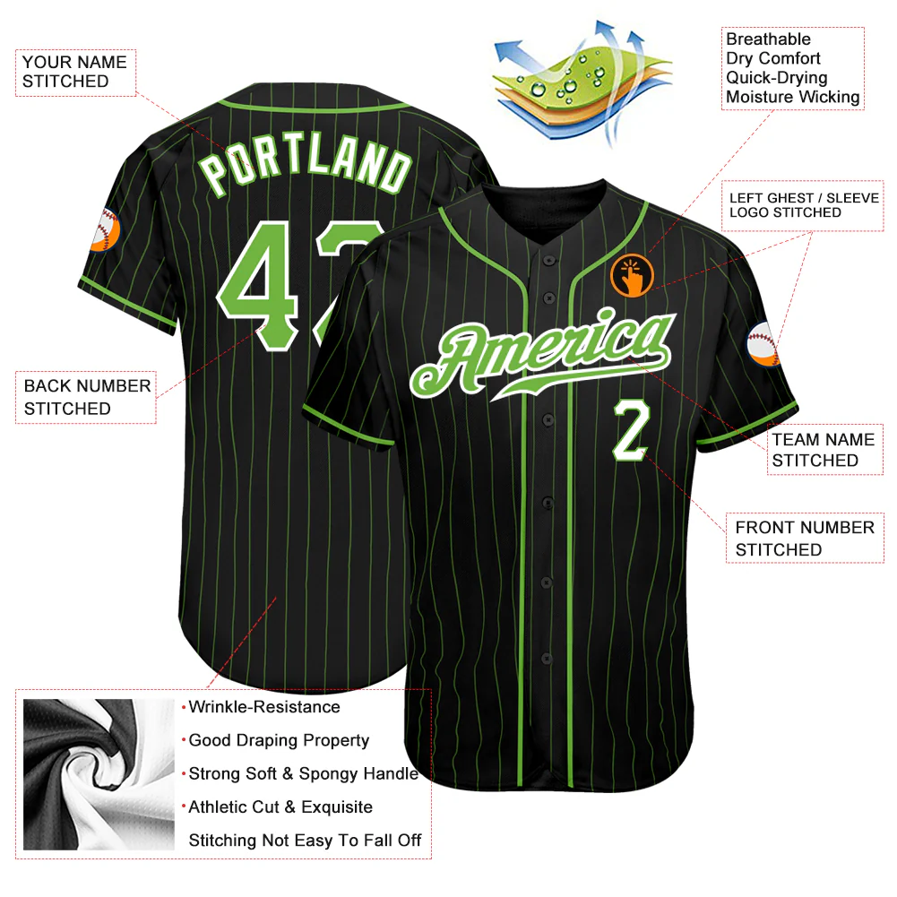 Custom Black Neon Green Pinstripe Neon Green-White Authentic Baseball Jersey