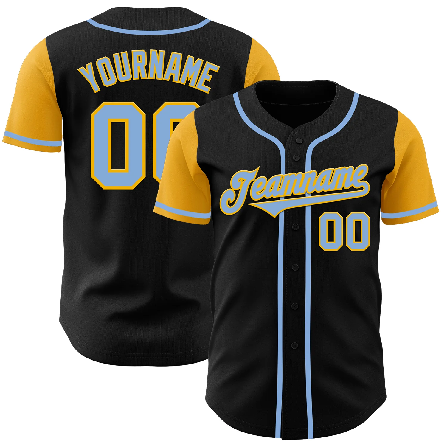 Custom Black Light Blue-Gold Authentic Two Tone Baseball Jersey