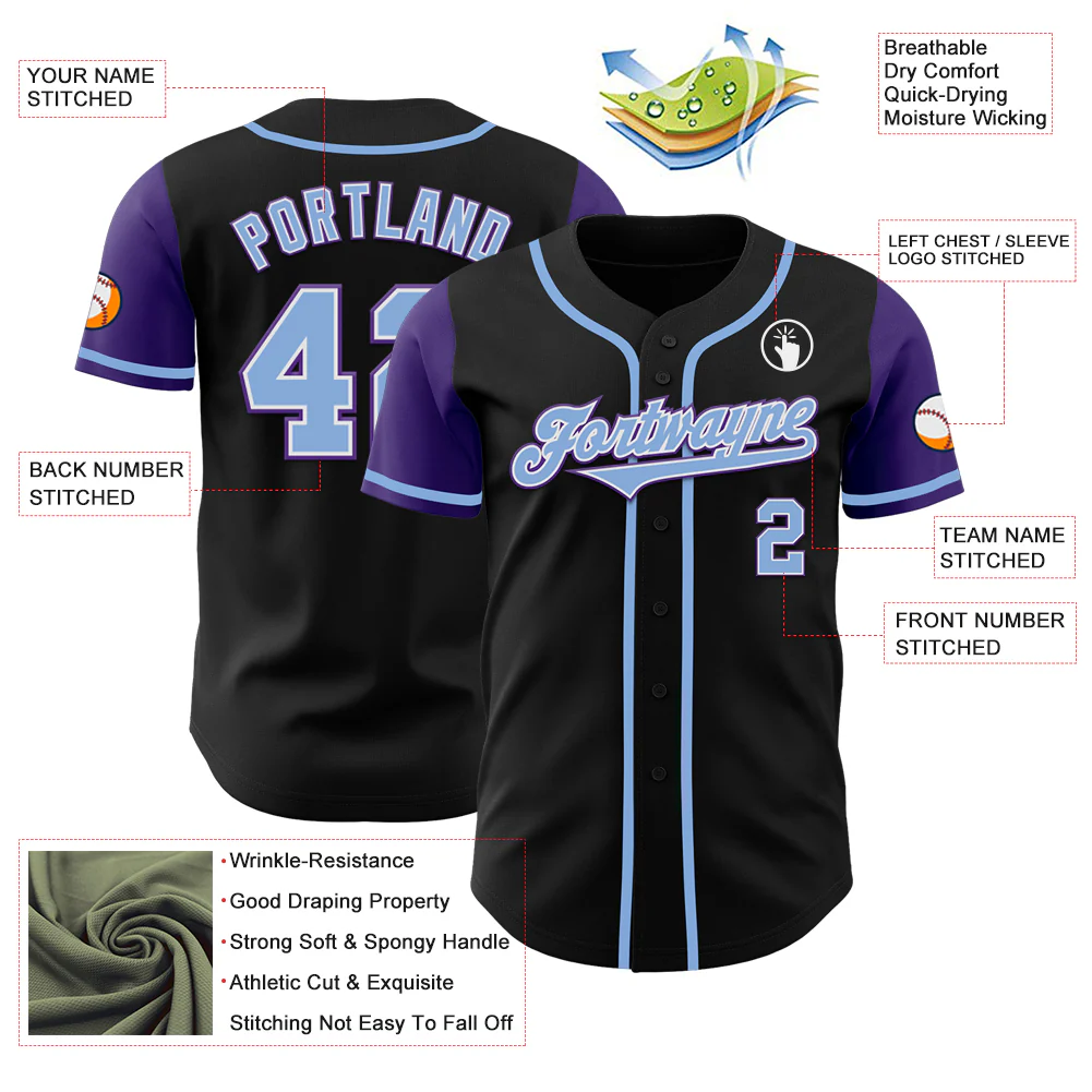 Custom Black Light Blue-Purple Authentic Two Tone Baseball Jersey