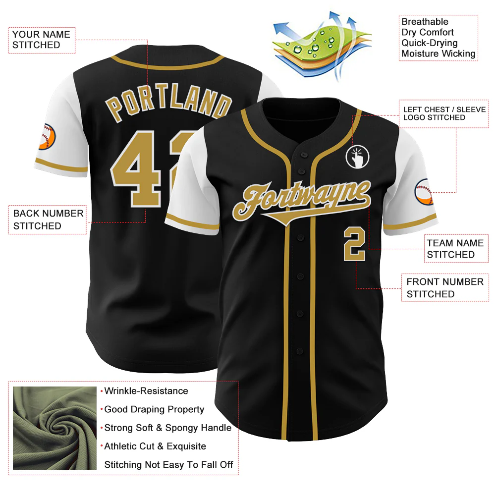 Custom Black Old Gold-White Authentic Two Tone Baseball Jersey