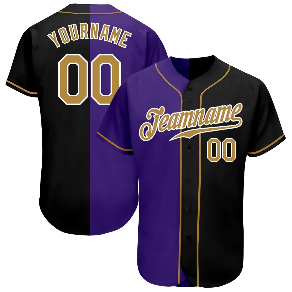 Custom Black Old Gold-Purple Authentic Split Fashion Baseball Jersey