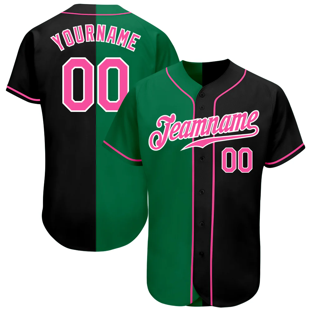 Custom Black Pink-Kelly Green Authentic Split Fashion Baseball Jersey