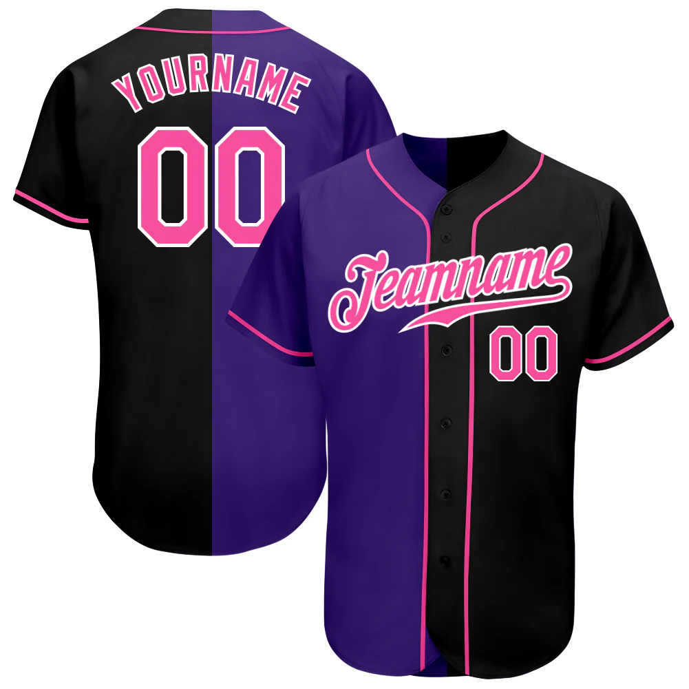 Custom Black Pink-Purple Authentic Split Fashion Baseball Jersey