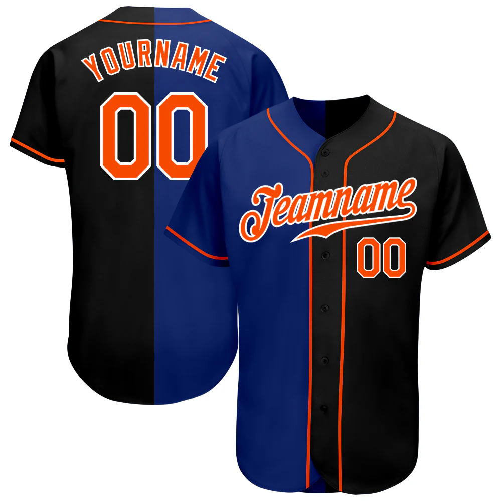 Custom Black Orange-Royal Authentic Split Fashion Baseball Jersey