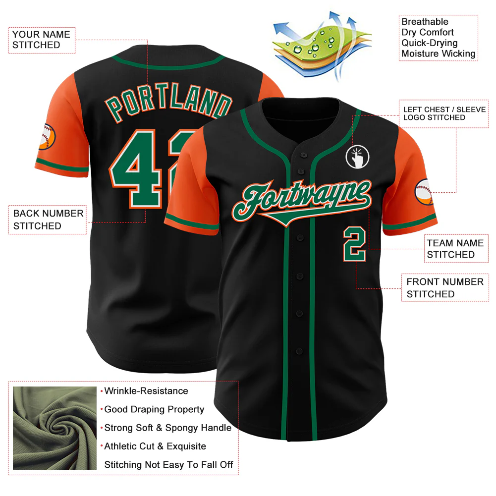 Custom Black Kelly Green-Orange Authentic Two Tone Baseball Jersey