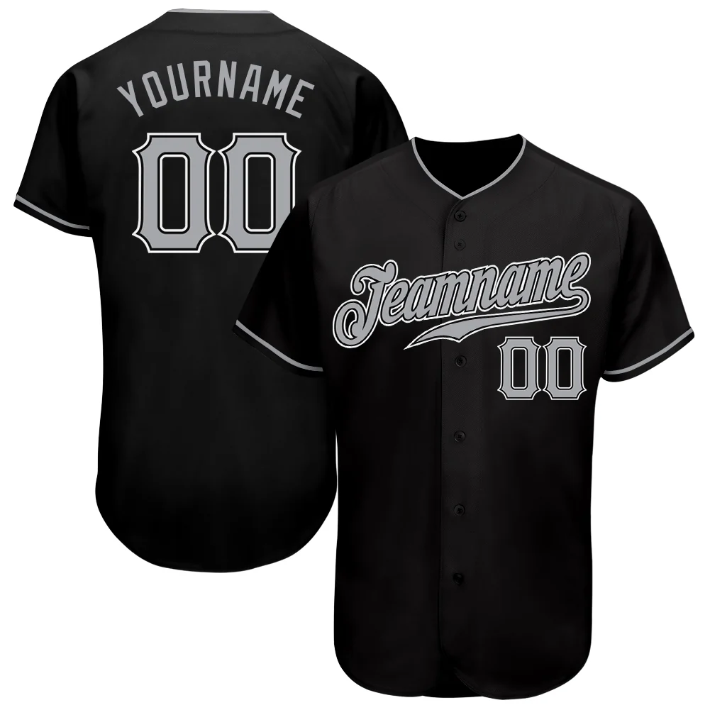 Custom Black Gray-White Authentic Baseball Jersey