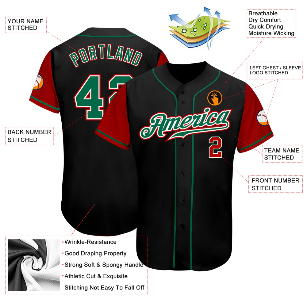 Custom Black Kelly Green-Red Authentic Two Tone Baseball Jersey