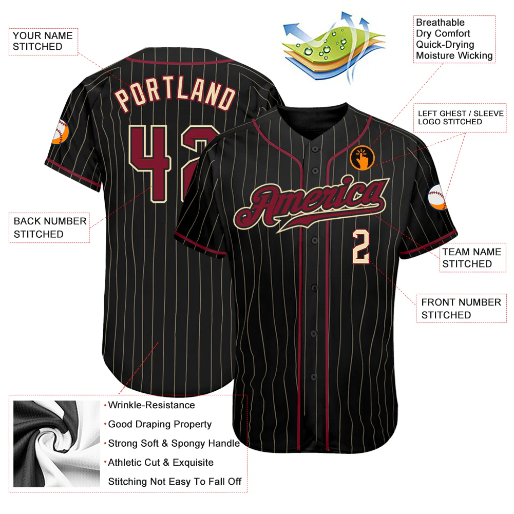Custom Black Cream Pinstripe Crimson-Cream Authentic Baseball Jersey