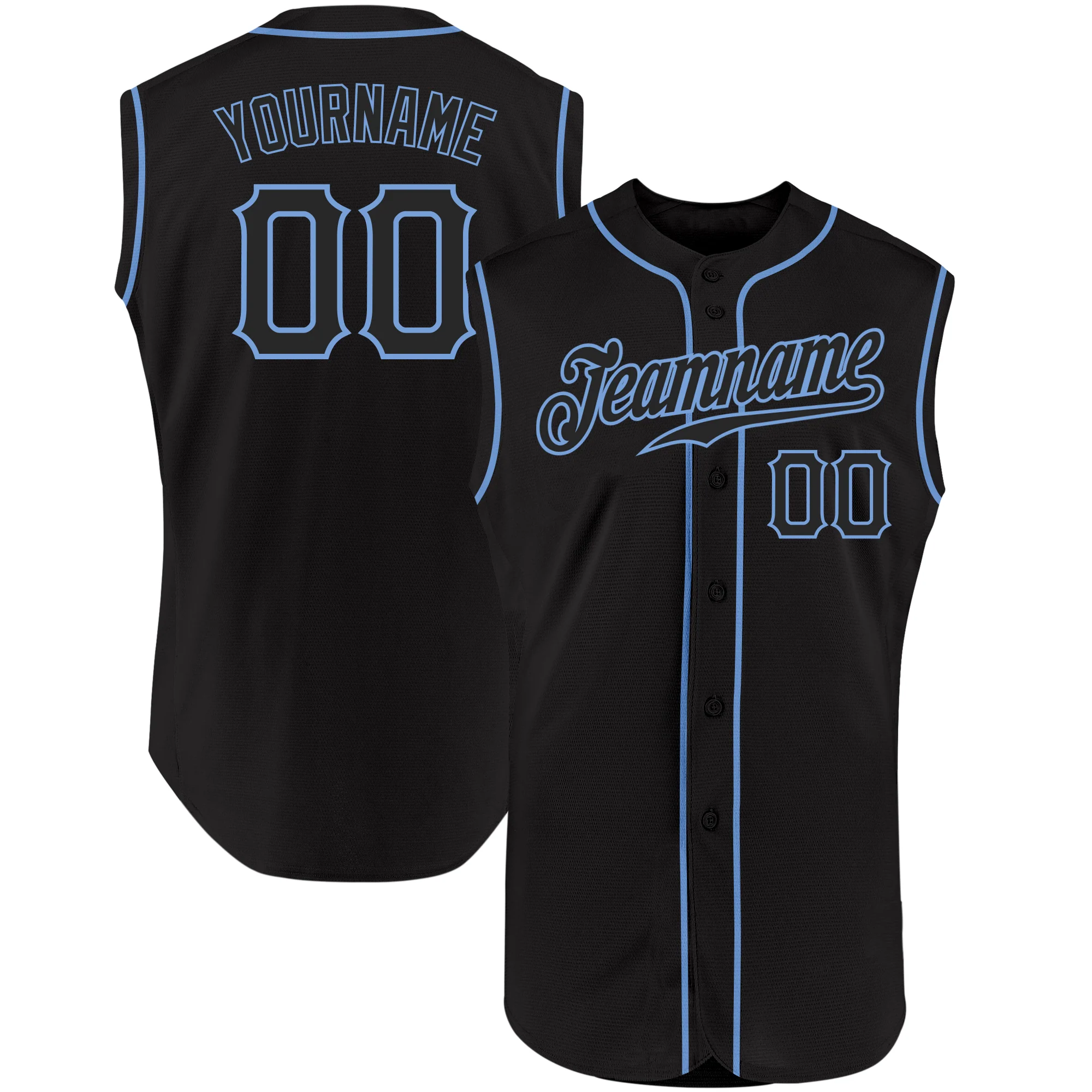 Custom Black Black-Light Blue Authentic Sleeveless Baseball Jersey