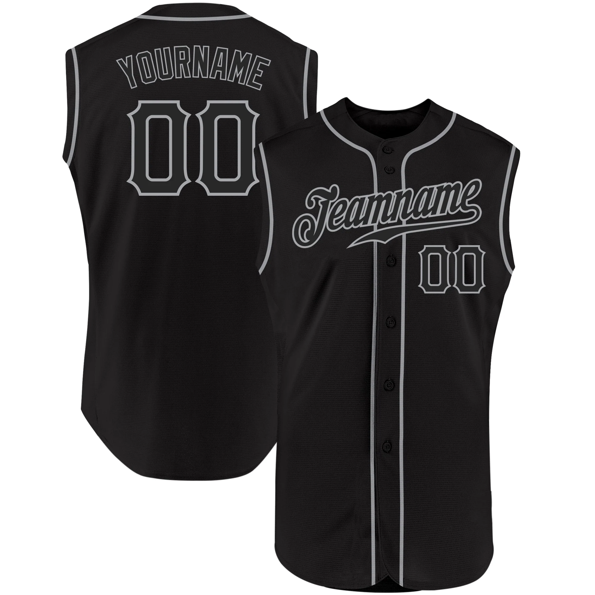 Custom Black Black-Gray Authentic Sleeveless Baseball Jersey