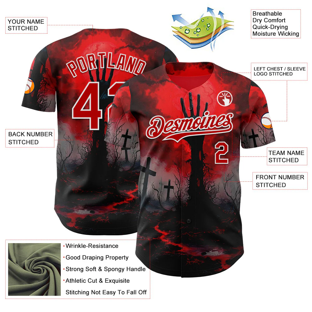 Custom Red Black-White 3D Halloween Spooky Horror Zombies Authentic Baseball Jersey
