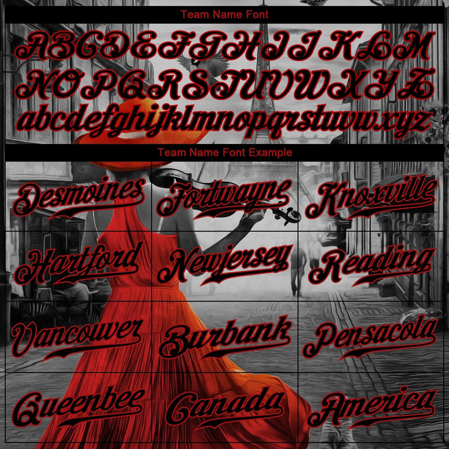 Custom Black Black-Red 3D Pattern Design A Girl With The Eiffel Tower Authentic Baseball Jersey