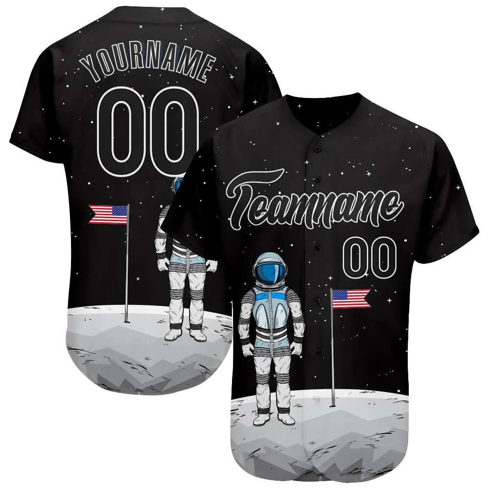 Custom Black Black-White 3D Pattern Design Astronaut Authentic Baseball Jersey