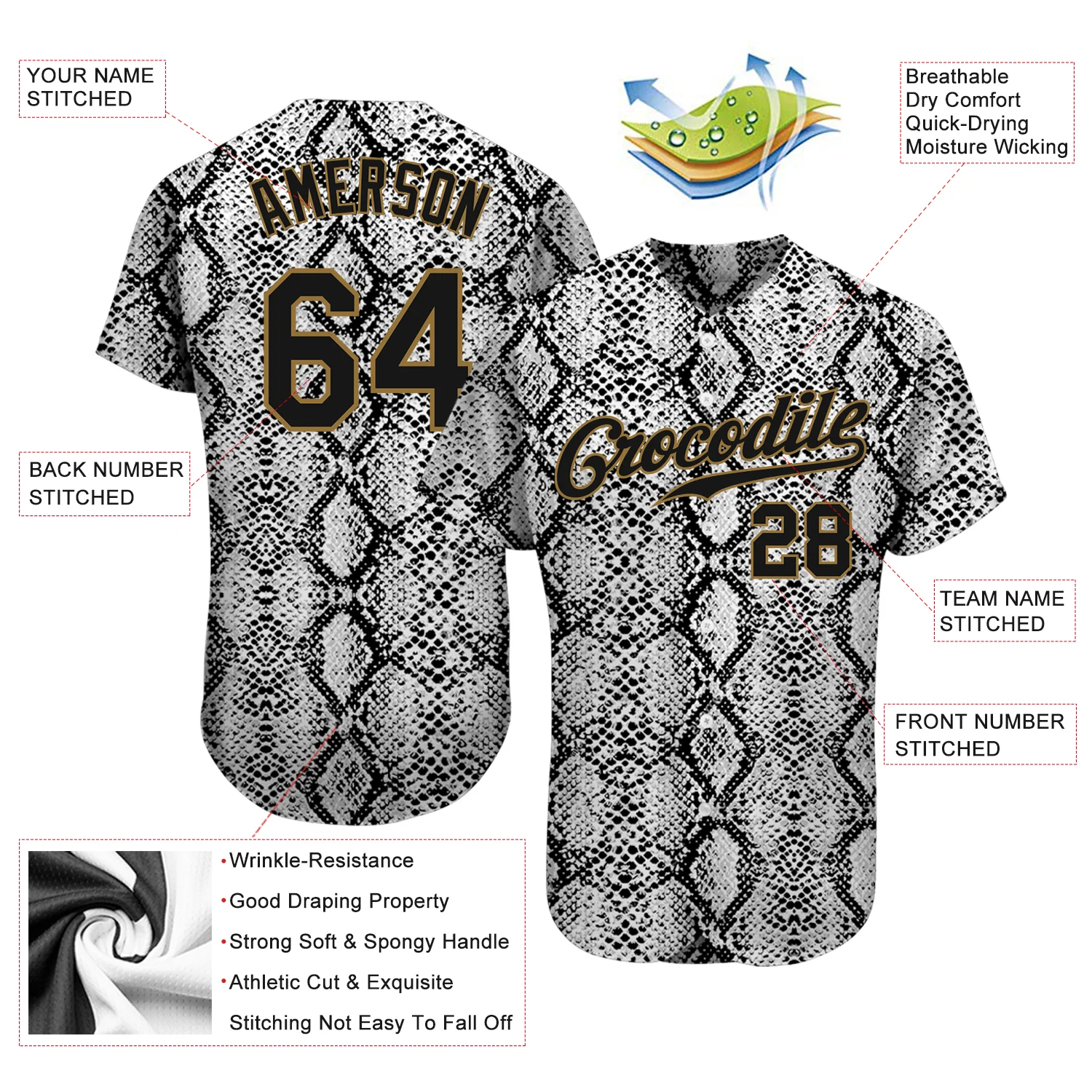 Custom Black Snakeskin Black-Old Gold 3D Pattern Design Authentic Baseball Jersey