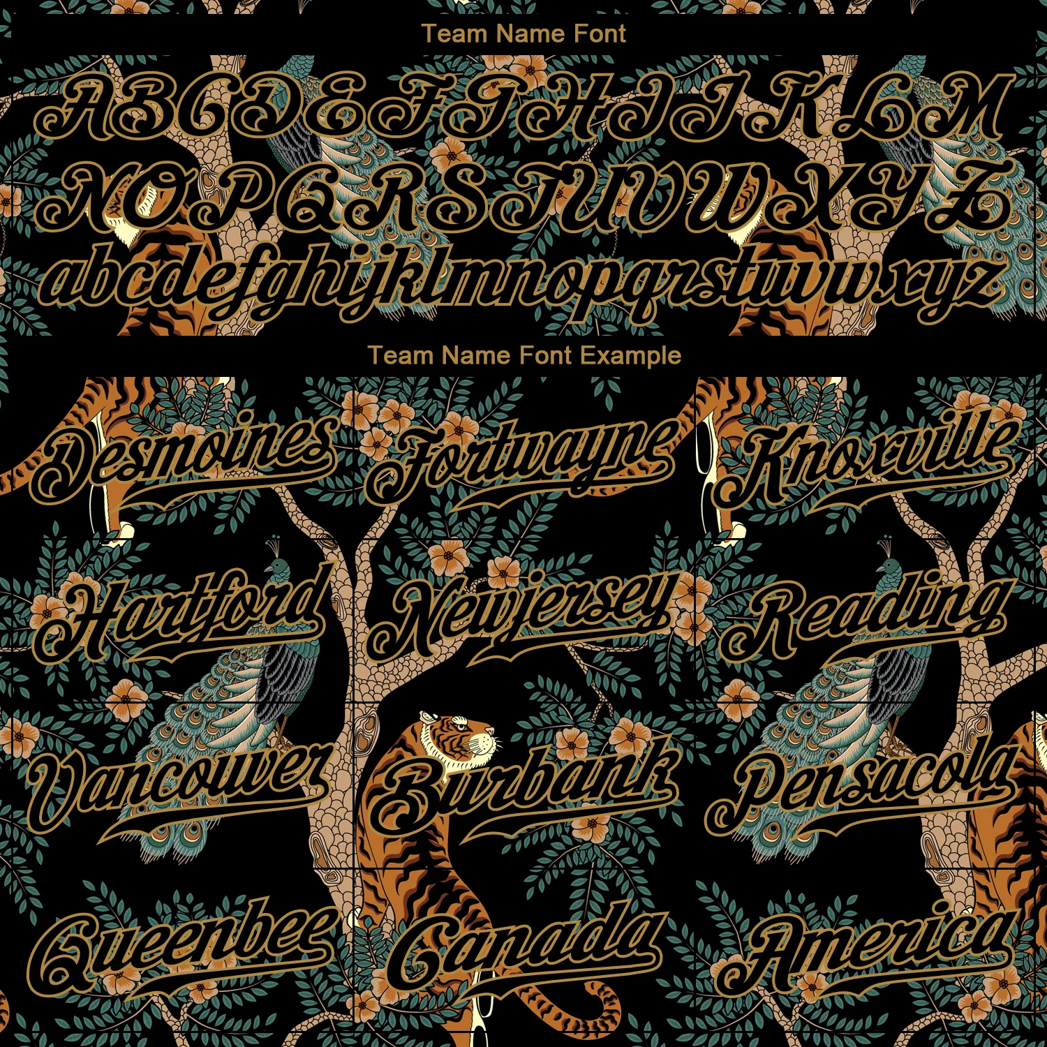 Custom Black Black-Old Gold 3D Pattern Design Tiger And Peacock Authentic Baseball Jersey