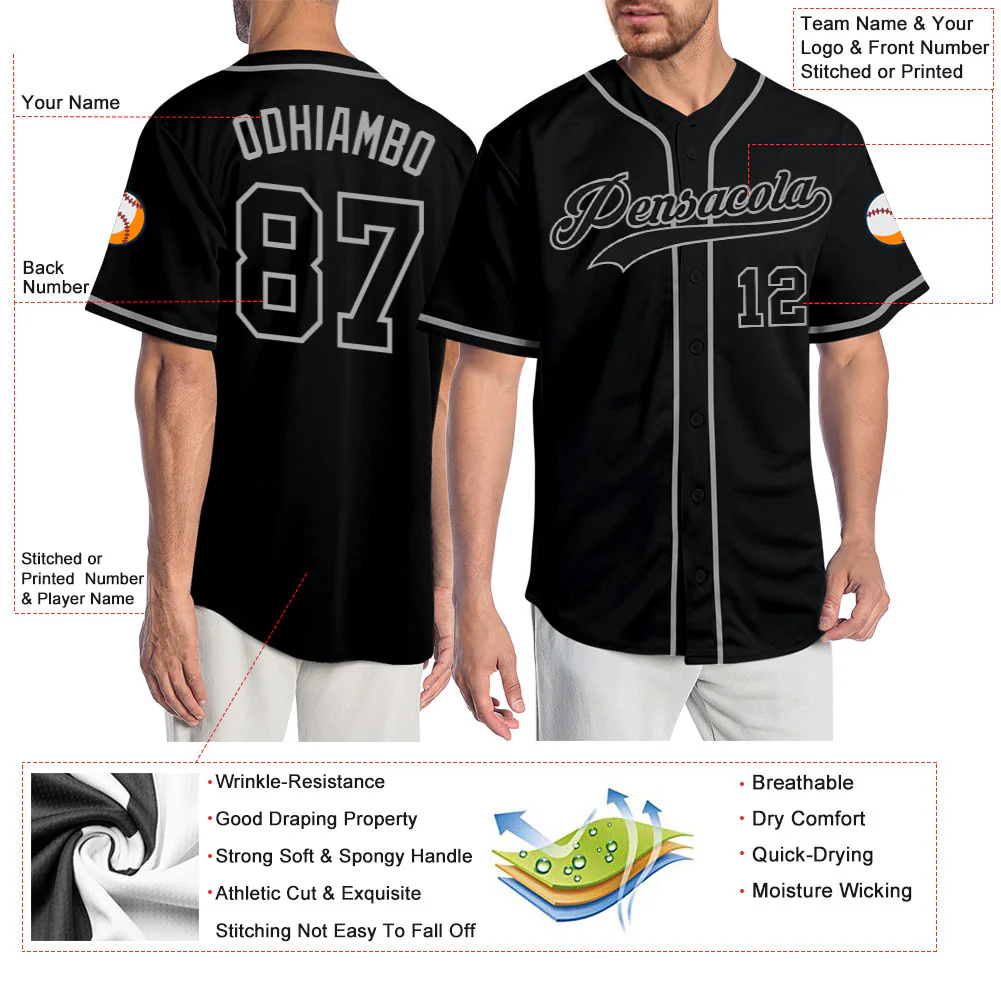 Custom Black Black-Gray Authentic Baseball Jersey