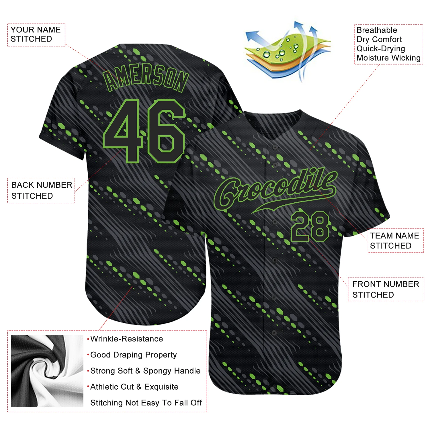 Custom Black Black-Neon Green 3D Pattern Design Authentic Baseball Jersey
