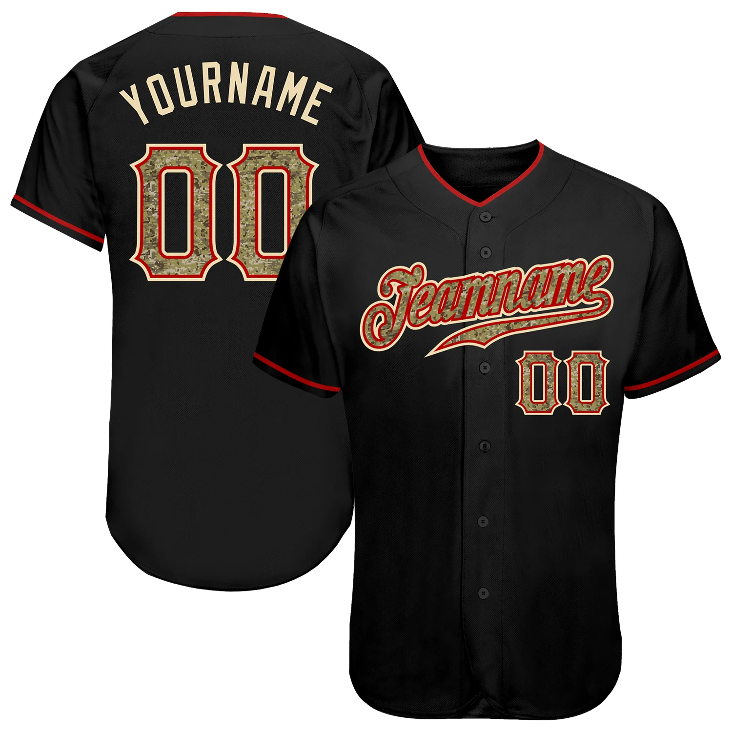 Custom Black Camo-Red Authentic Baseball Jersey