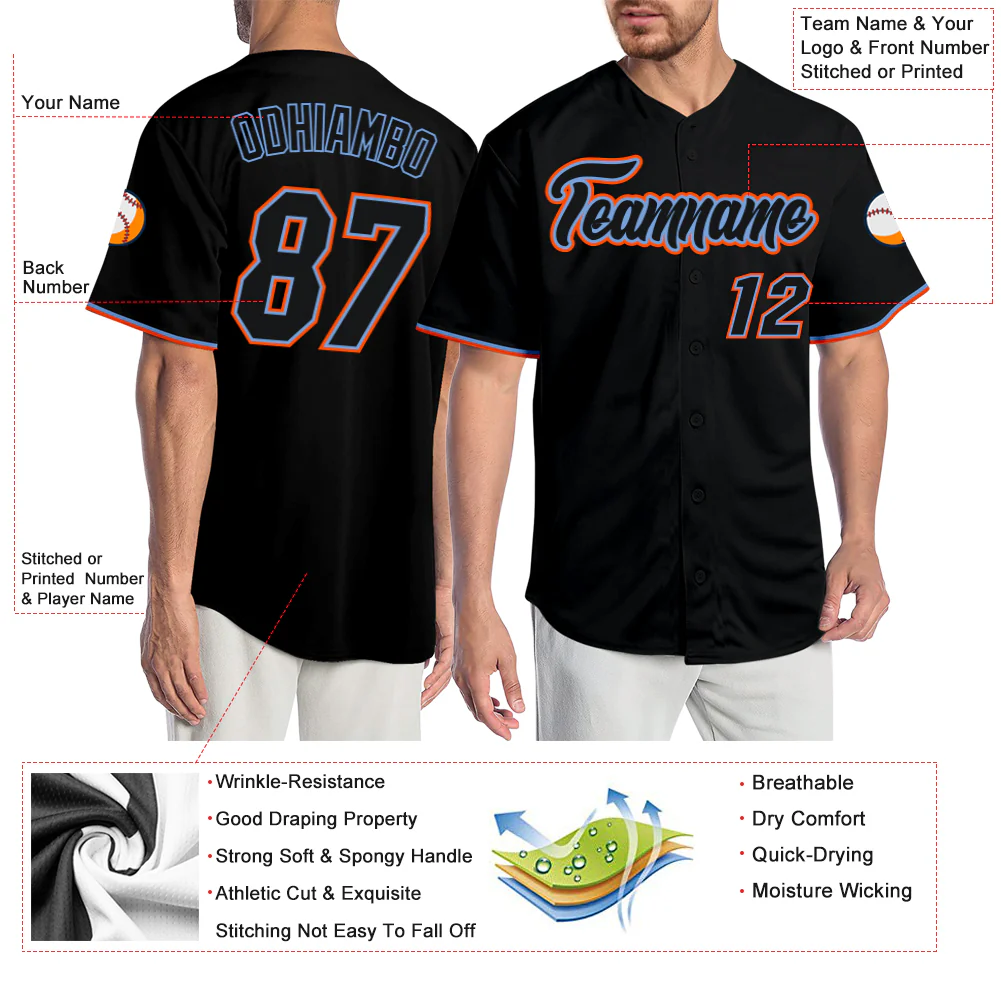 Custom Black Black-Orange Authentic Baseball Jersey