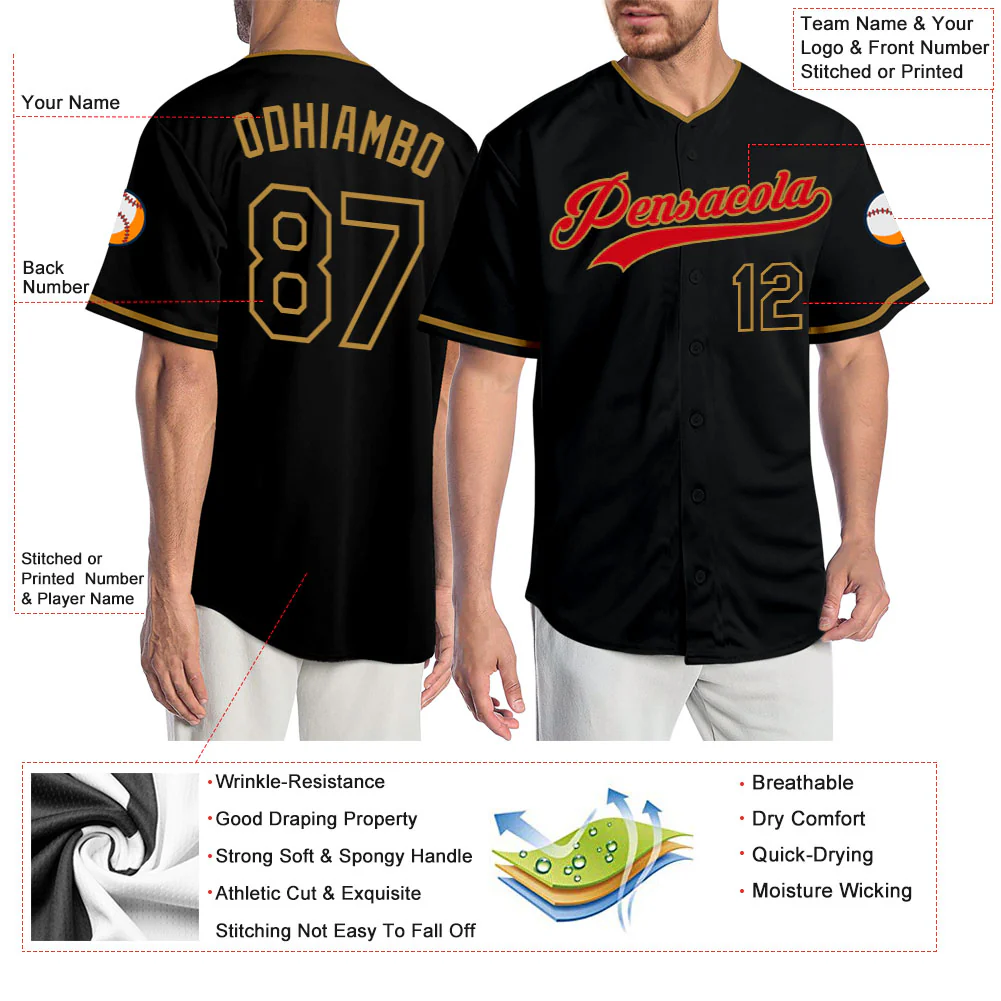 Custom Black Gold Pinstripe Gold-Red Authentic Baseball Jersey