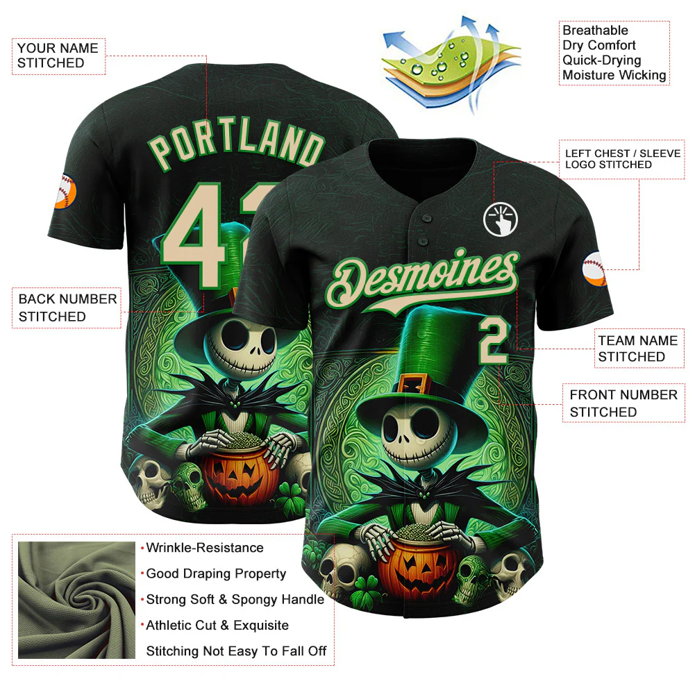 Custom Black City Cream-Grass Green 3D Halloween Spooky Pumpkin Authentic Baseball Jersey