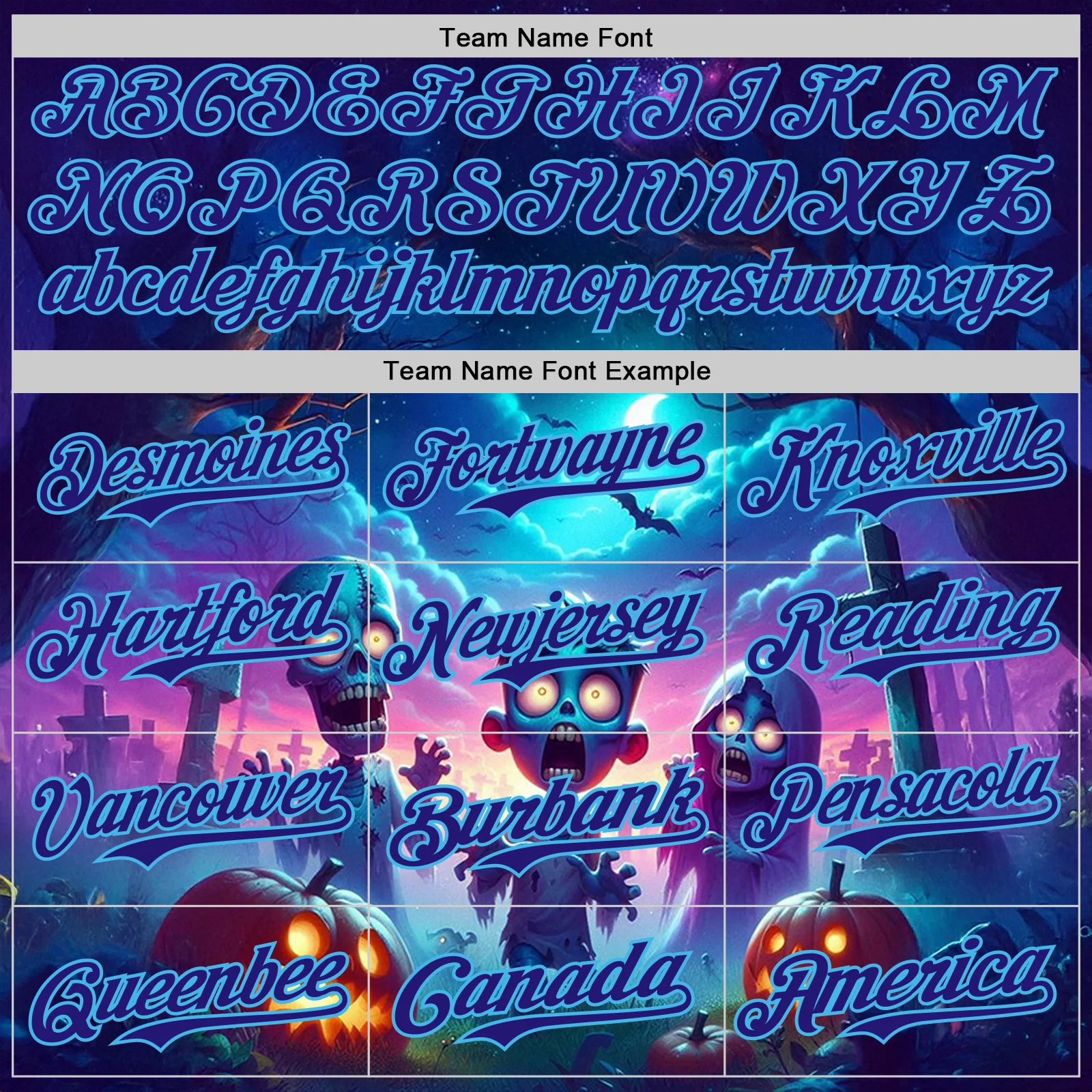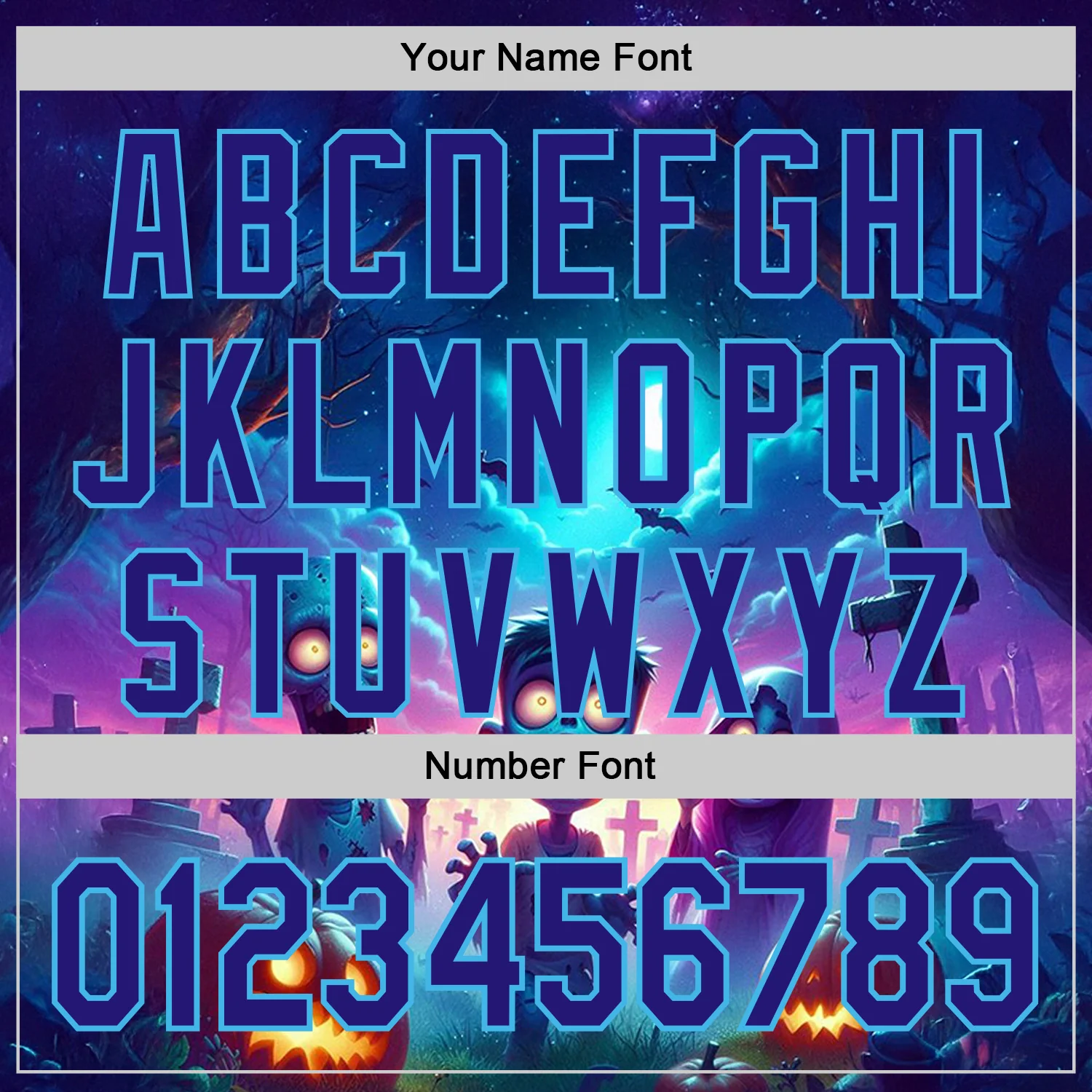 Custom Blue Dark Purple Black-Sky Blue 3D Halloween Spooky Pumpkin Zombies Authentic Baseball Jersey