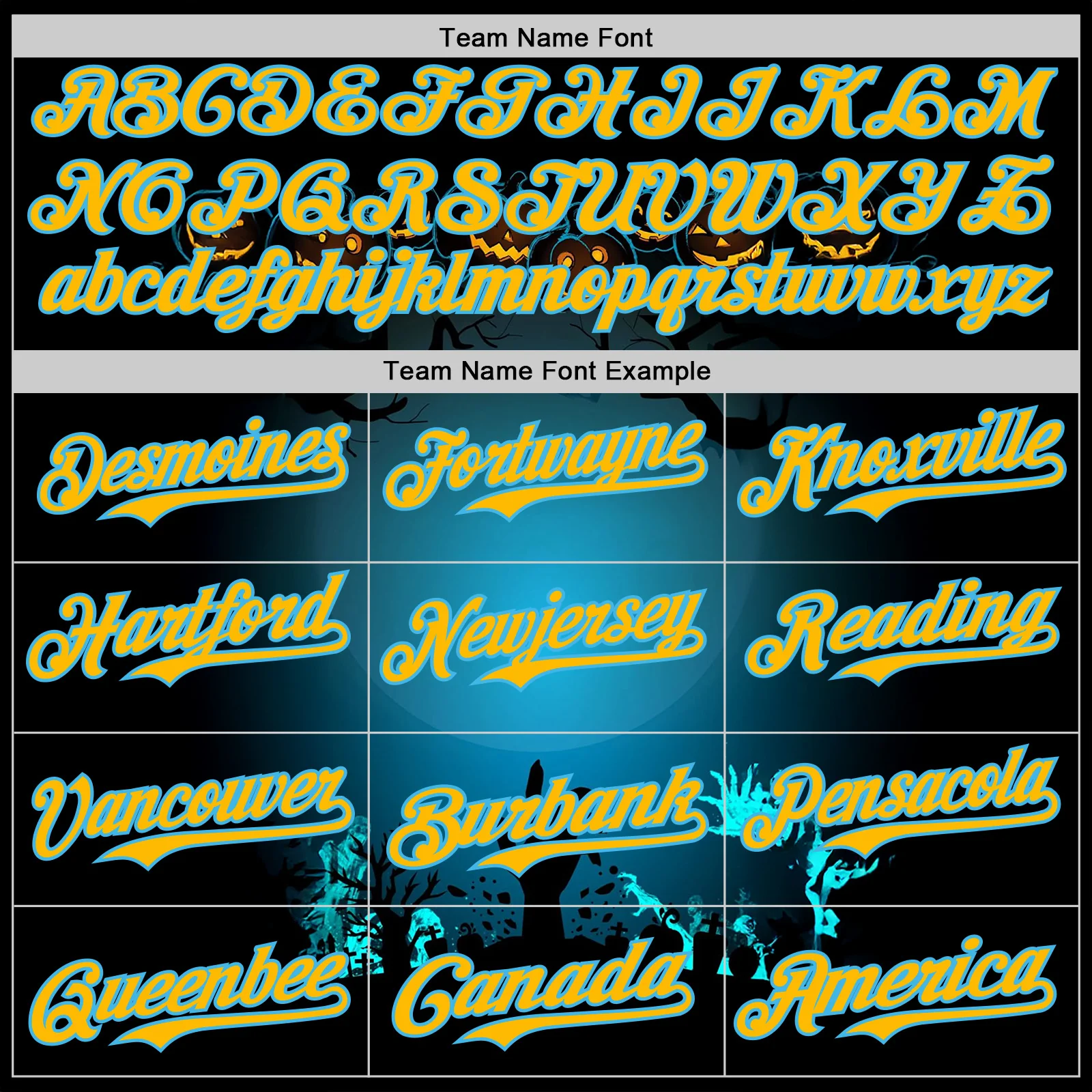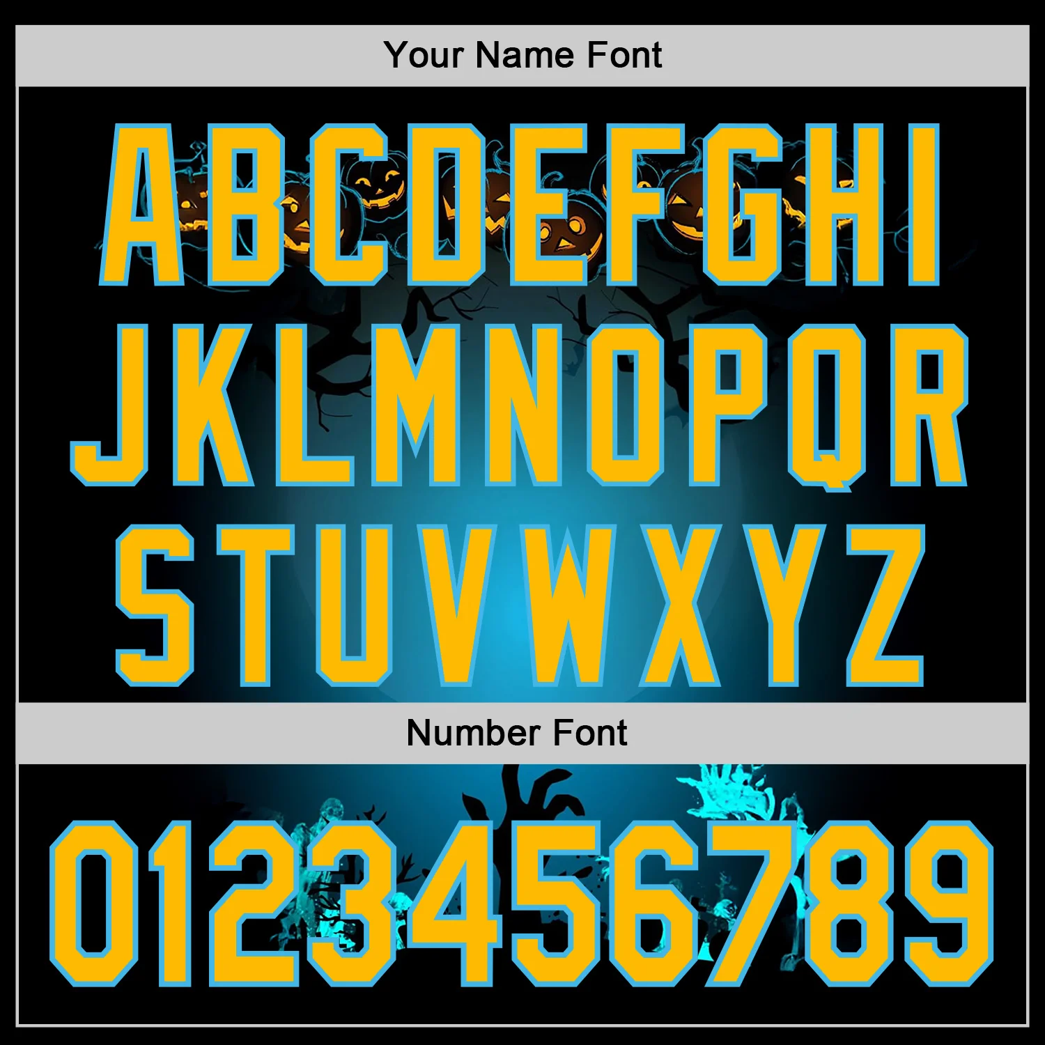 Custom Black Gold-Sky Blue 3D Halloween Spooky Pumpkin Zombies Authentic Baseball Jersey