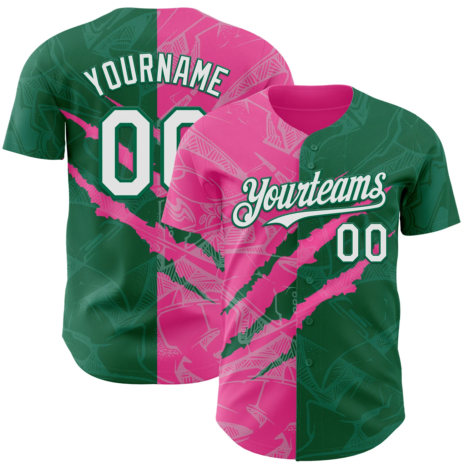 Custom Graffiti Pattern White Kelly Green-Medium Pink 3D Scratch Authentic Baseball Jersey