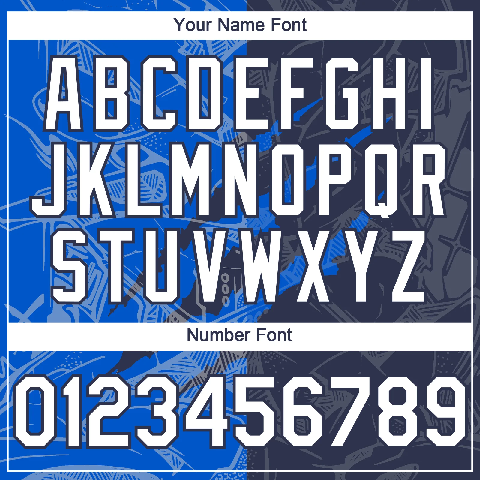 Custom Graffiti Pattern White Navy-Thunder Blue 3D Scratch Authentic Baseball Jersey