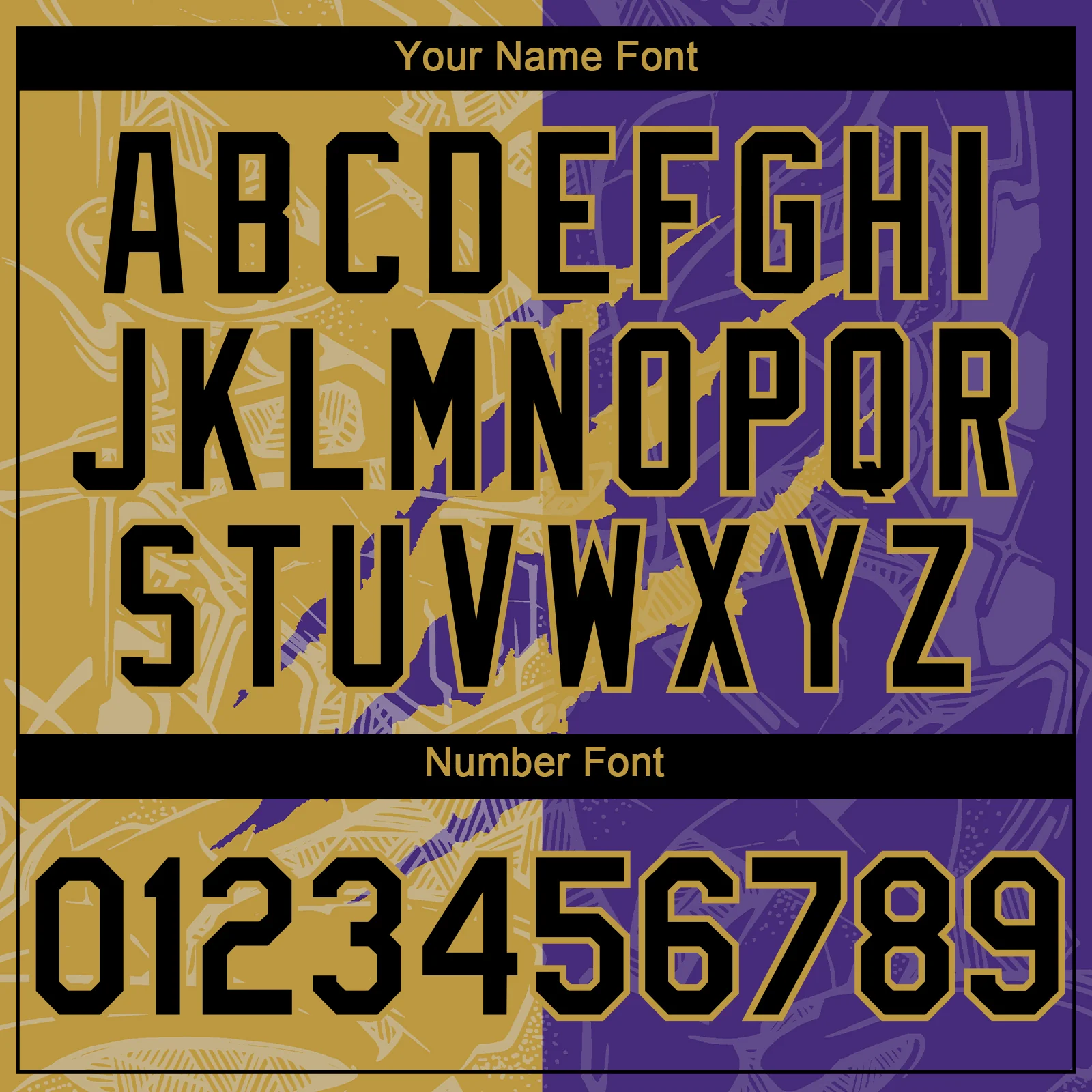 Custom Graffiti Pattern Black Purple-Old Gold 3D Scratch Authentic Baseball Jersey