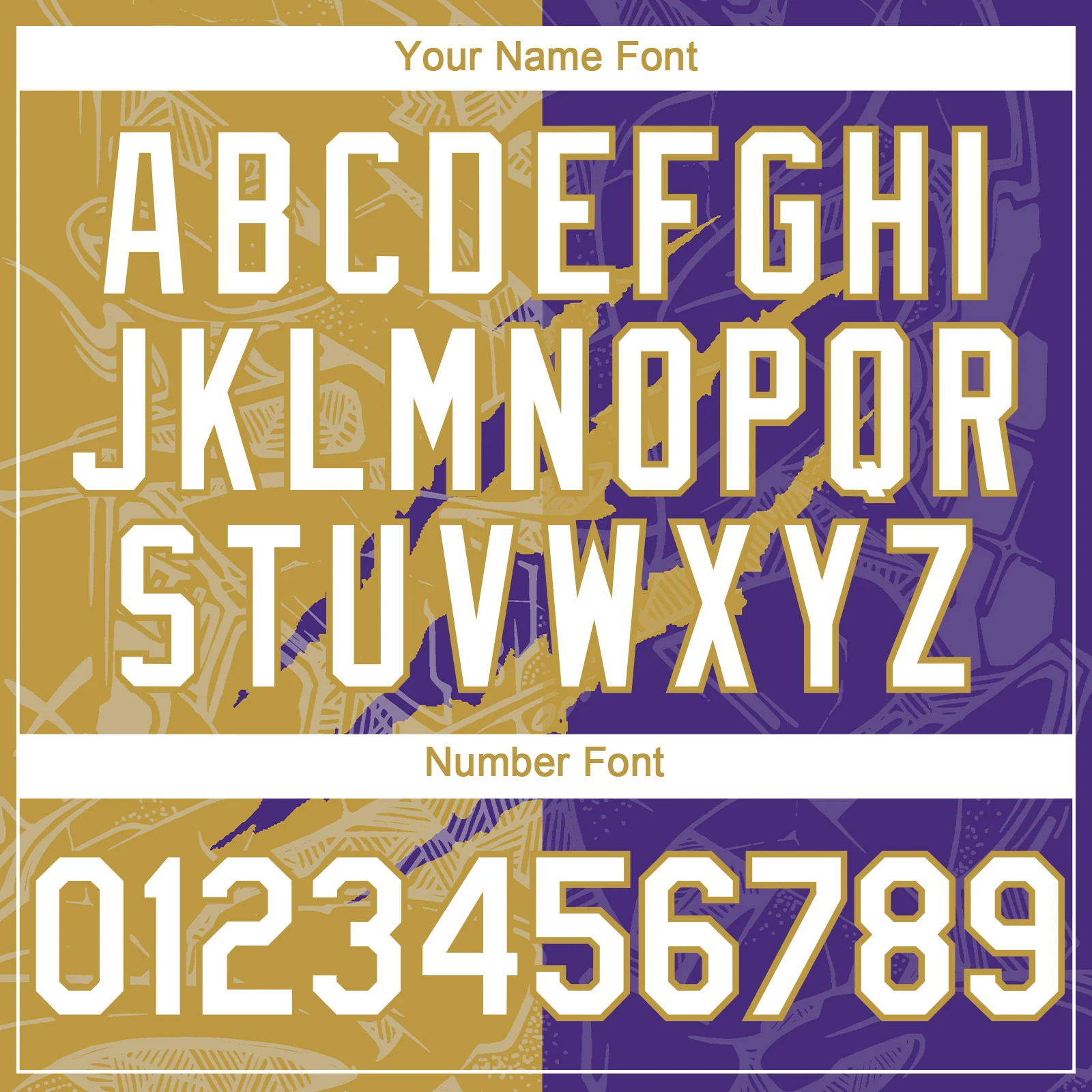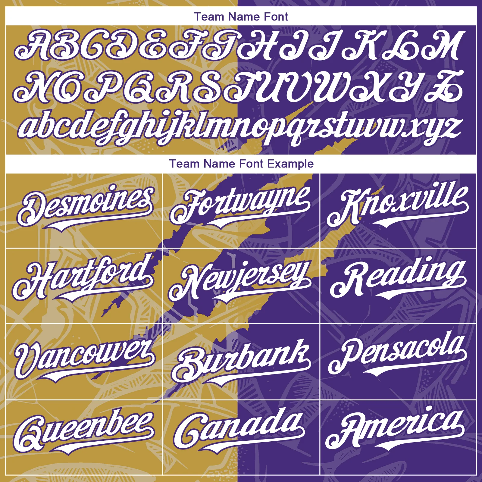Custom Graffiti Pattern White Purple-Old Gold 3D Scratch Authentic Baseball Jersey