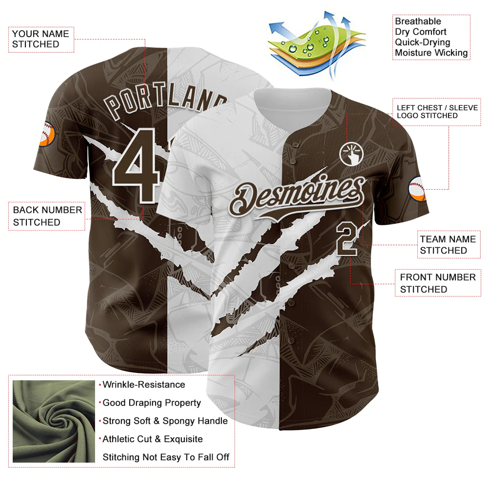 Custom Graffiti Pattern Brown-White 3D Scratch Authentic Baseball Jersey