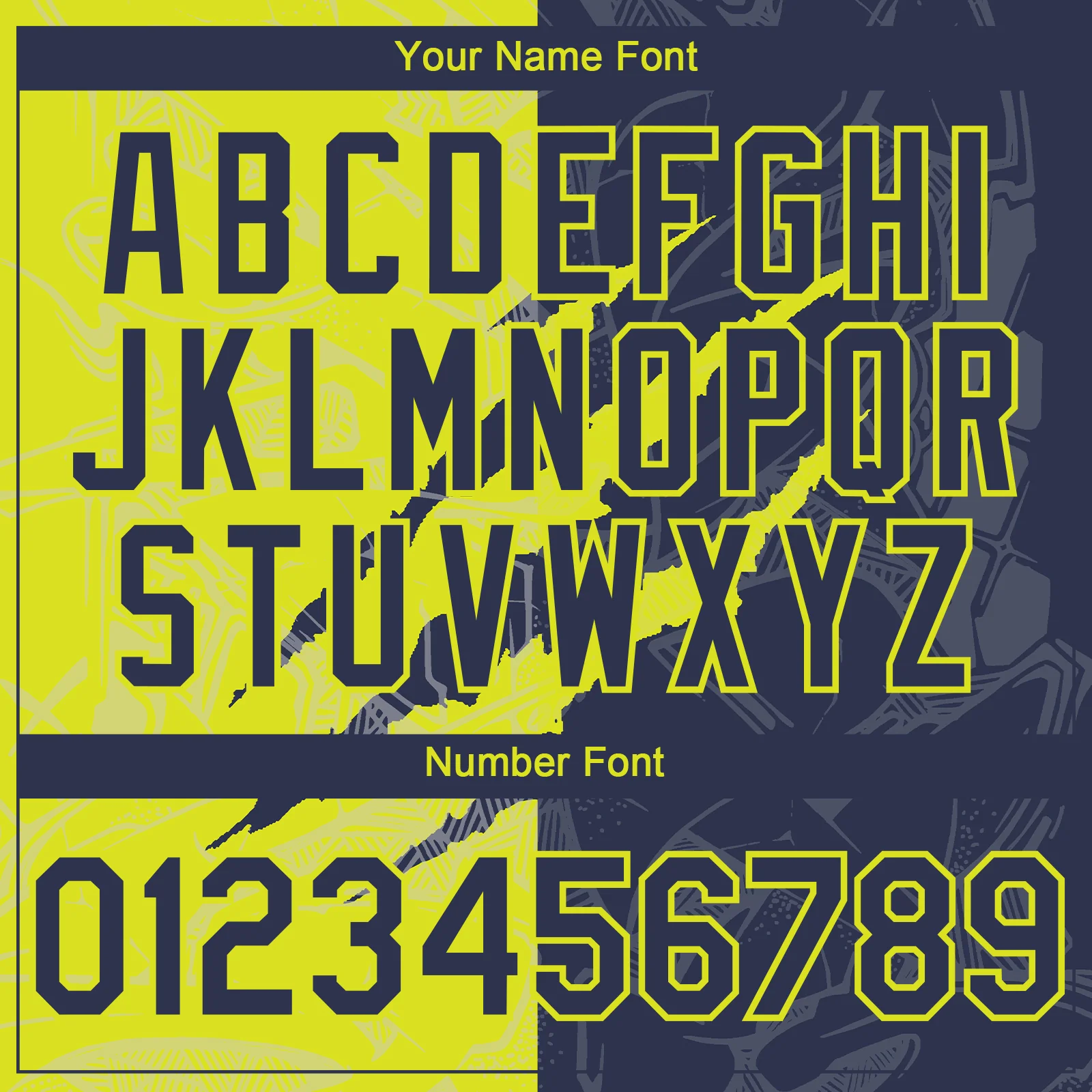 Custom Graffiti Pattern Navy-Neon Yellow 3D Scratch Authentic Baseball Jersey