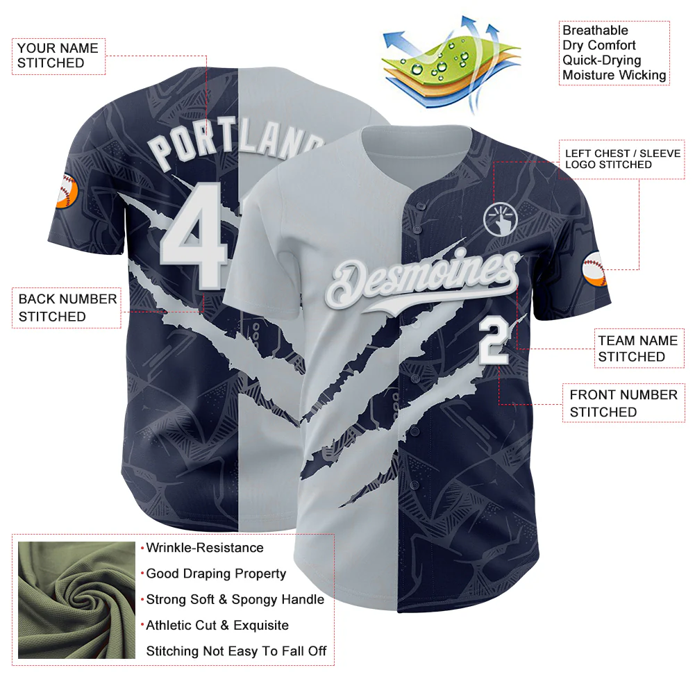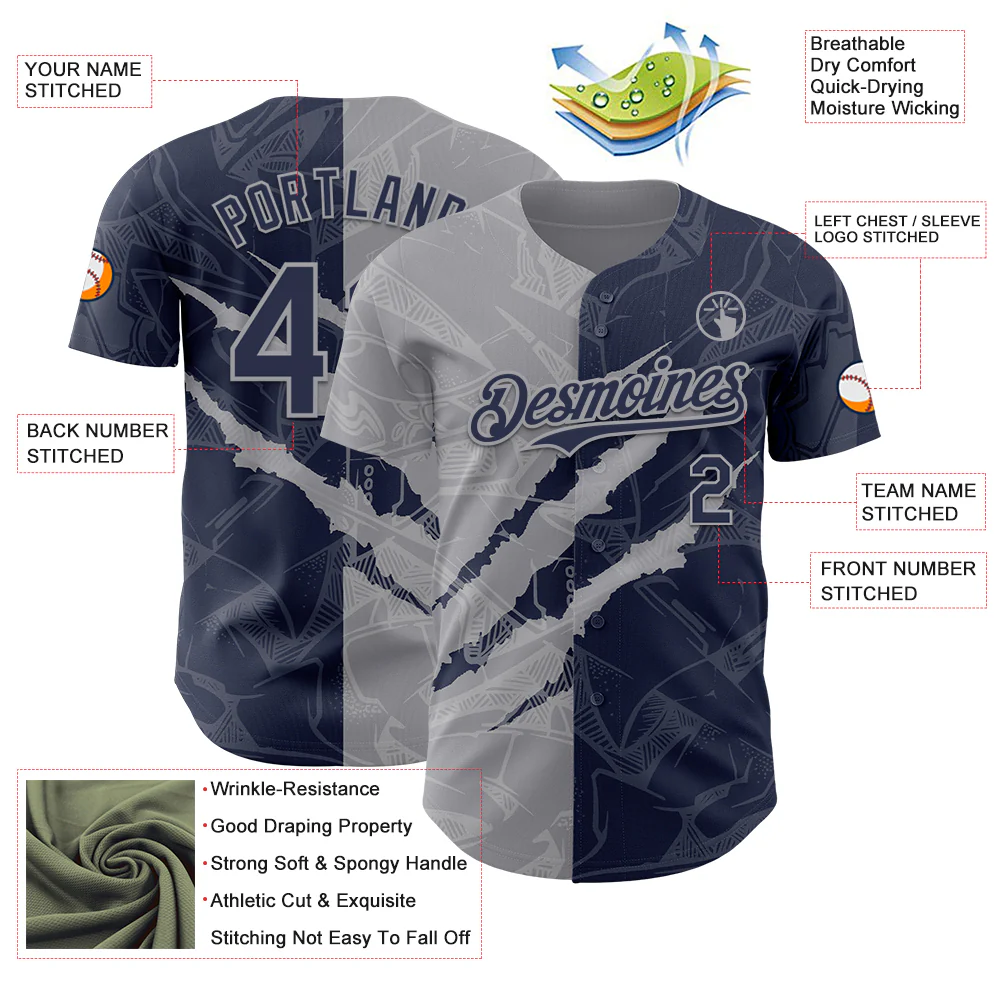 Custom Graffiti Pattern Navy-Gray 3D Scratch Authentic Baseball Jersey