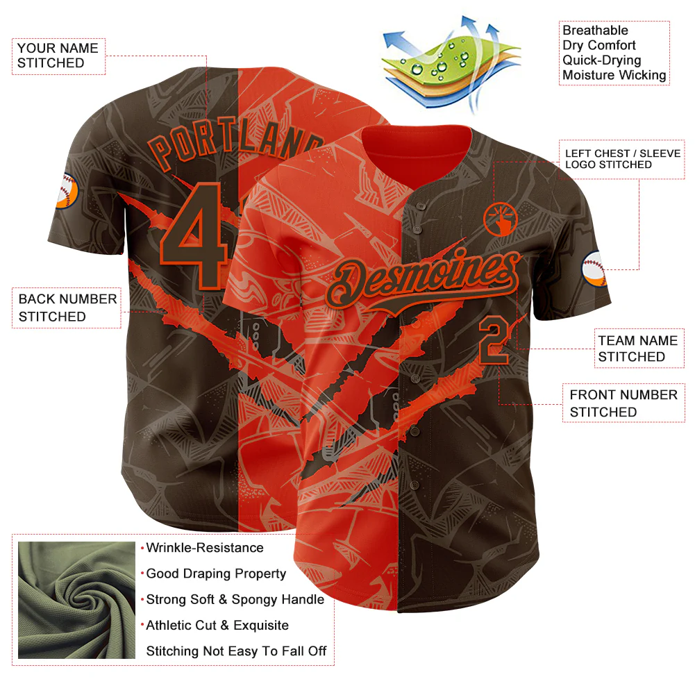 Custom Graffiti Pattern Brown-Orange 3D Scratch Authentic Baseball Jersey