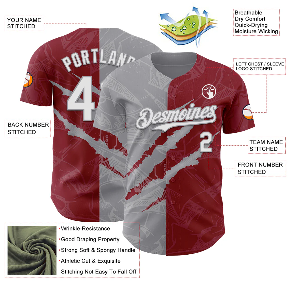 Custom Graffiti Pattern White Crimson-Gray 3D Scratch Authentic Baseball Jersey