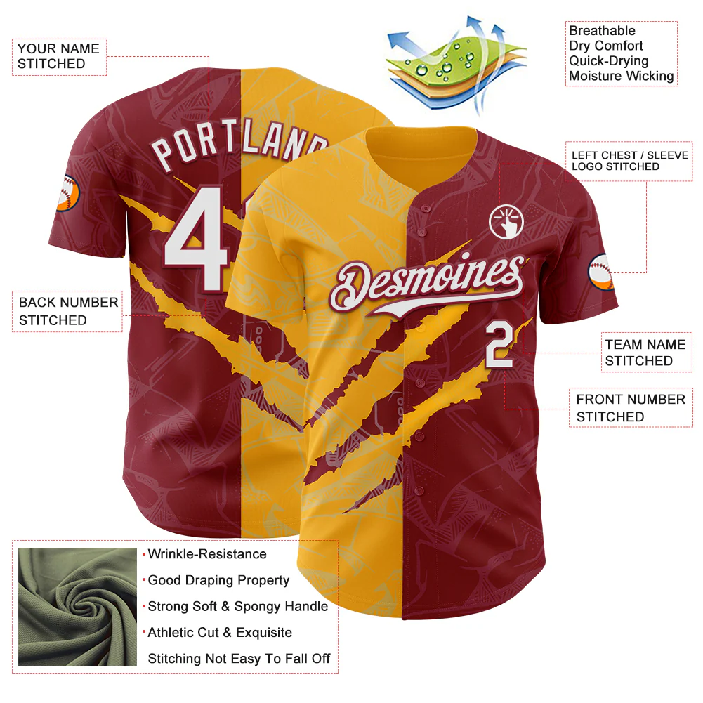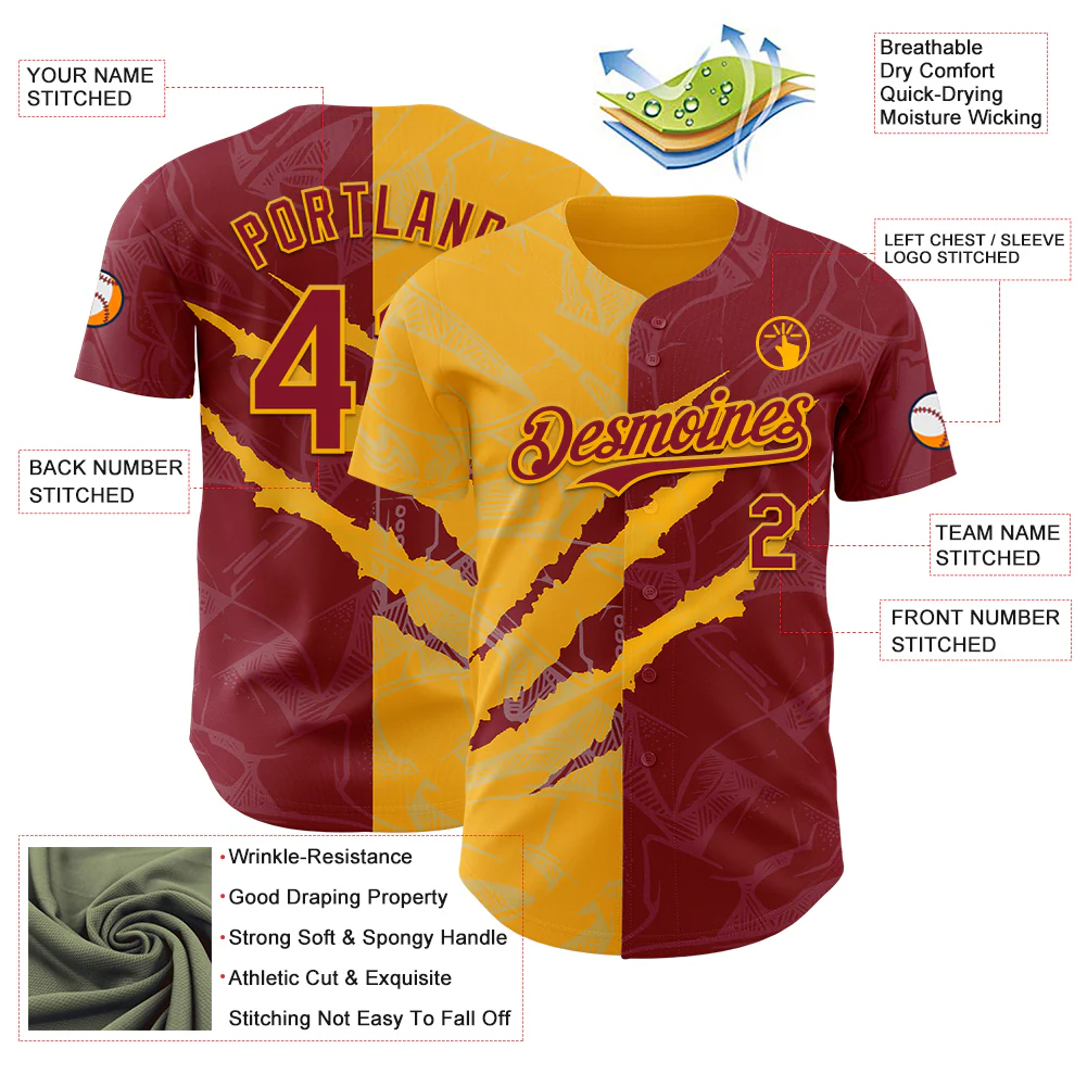 Custom Graffiti Pattern Crimson-Gold 3D Scratch Authentic Baseball Jersey