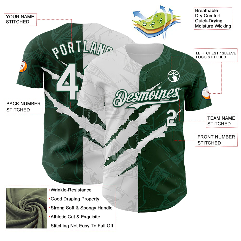 Custom Graffiti Pattern White-Green 3D Scratch Authentic Baseball Jersey