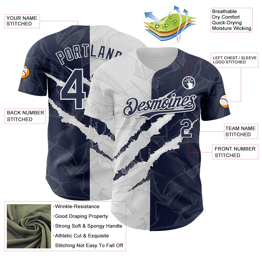 Custom Graffiti Pattern Navy-White 3D Scratch Authentic Baseball Jersey