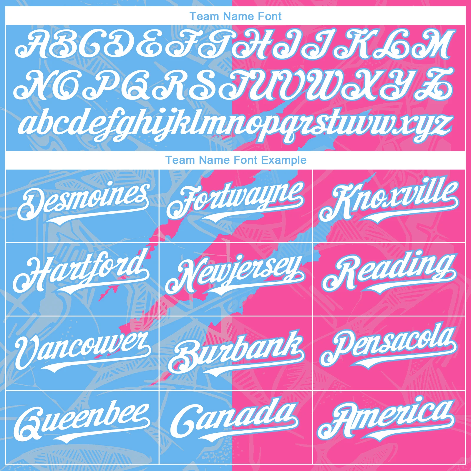 Custom Graffiti Pattern White Pink-Sky Blue 3D Scratch Authentic Baseball Jersey