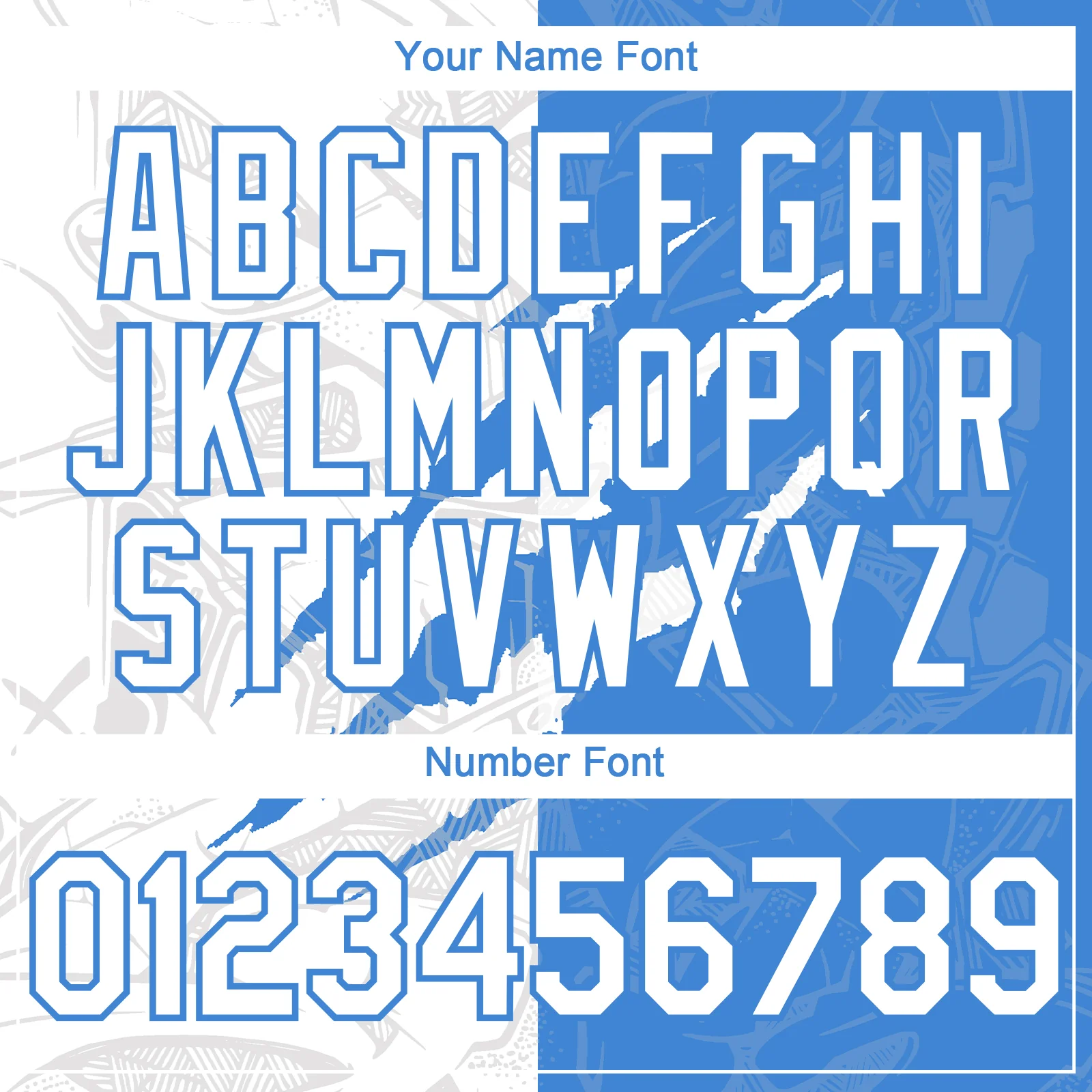 Custom Graffiti Pattern White-Light Blue 3D Scratch Authentic Baseball Jersey