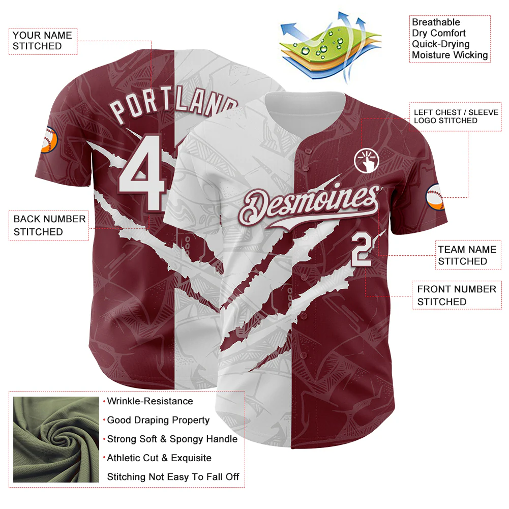 Custom Graffiti Pattern White-Burgundy 3D Scratch Authentic Baseball Jersey