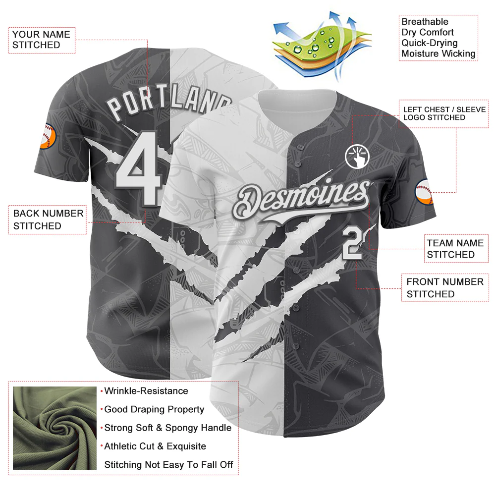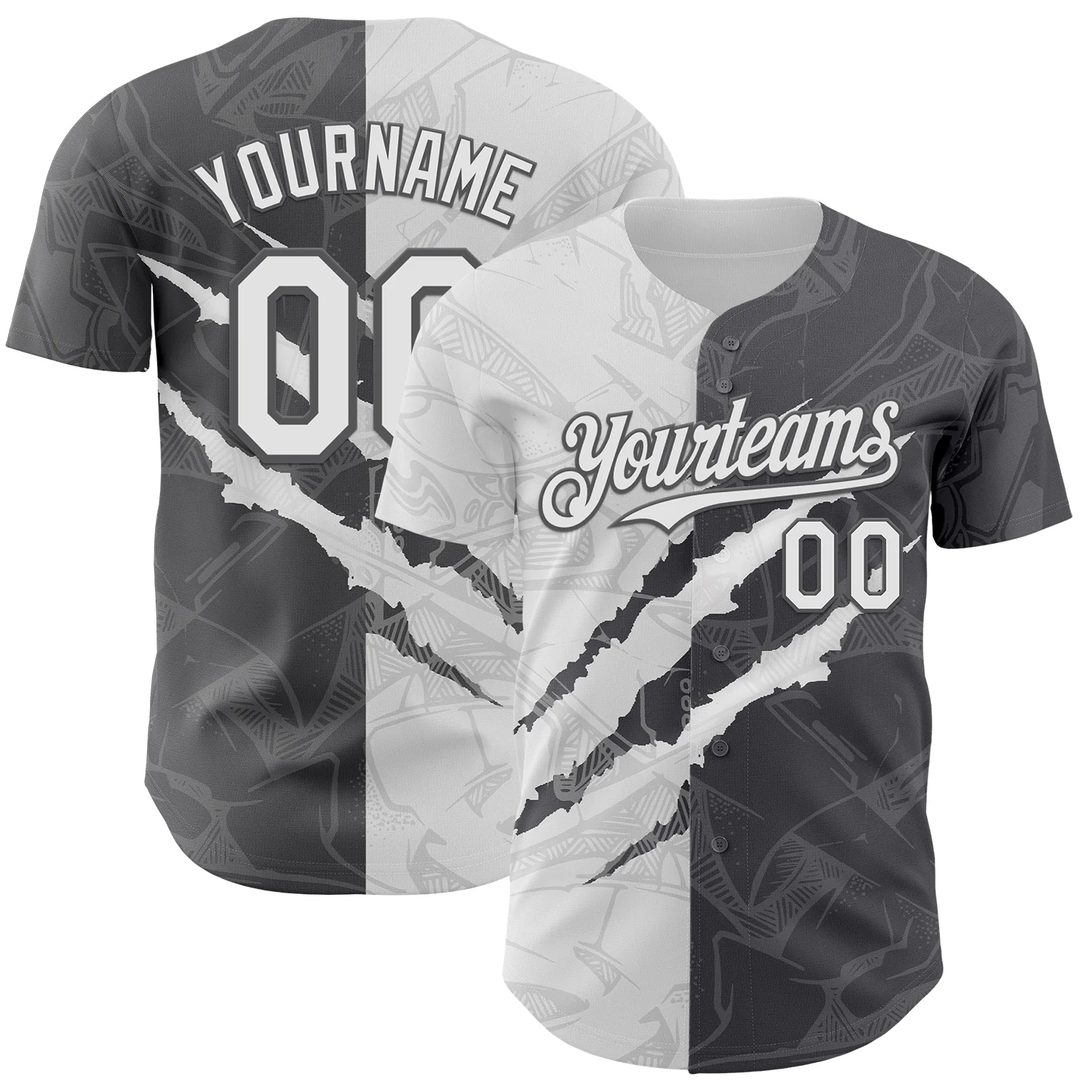 Custom Graffiti Pattern White-Steel Gray 3D Scratch Authentic Baseball Jersey