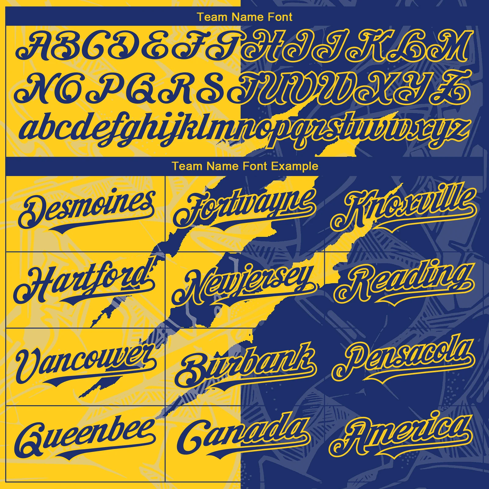 Custom Graffiti Pattern Royal-Yellow 3D Scratch Authentic Baseball Jersey