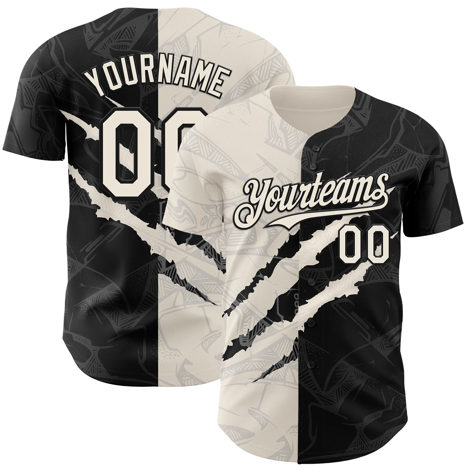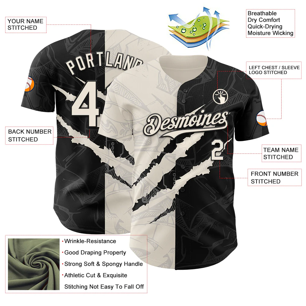 Custom Graffiti Pattern Cream-Black 3D Scratch Authentic Baseball Jersey