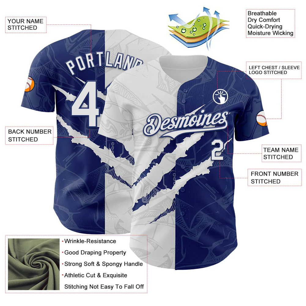 Custom Graffiti Pattern White-Royal 3D Scratch Authentic Baseball Jersey